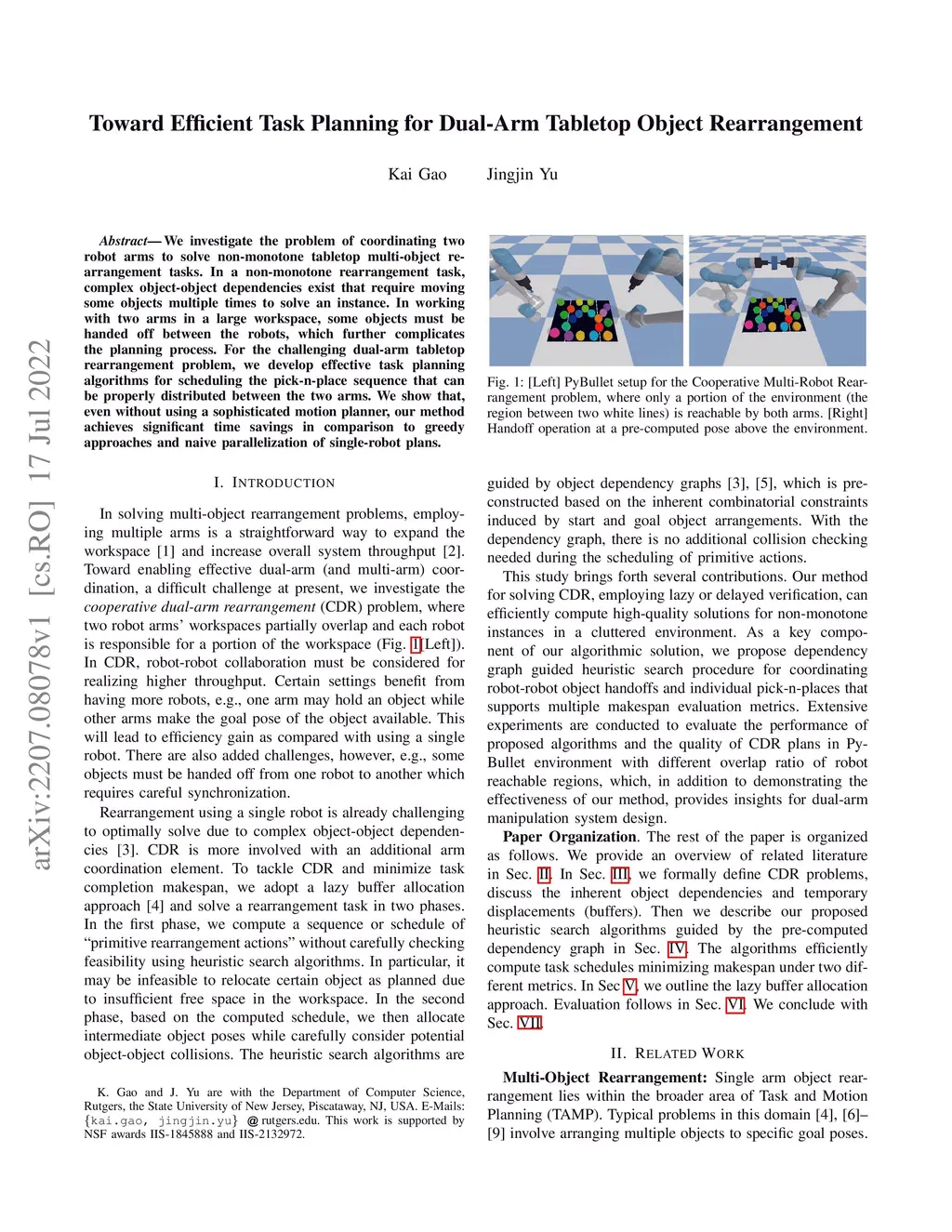 Toward Efficient Task Planning for Dual-Arm Tabletop Object