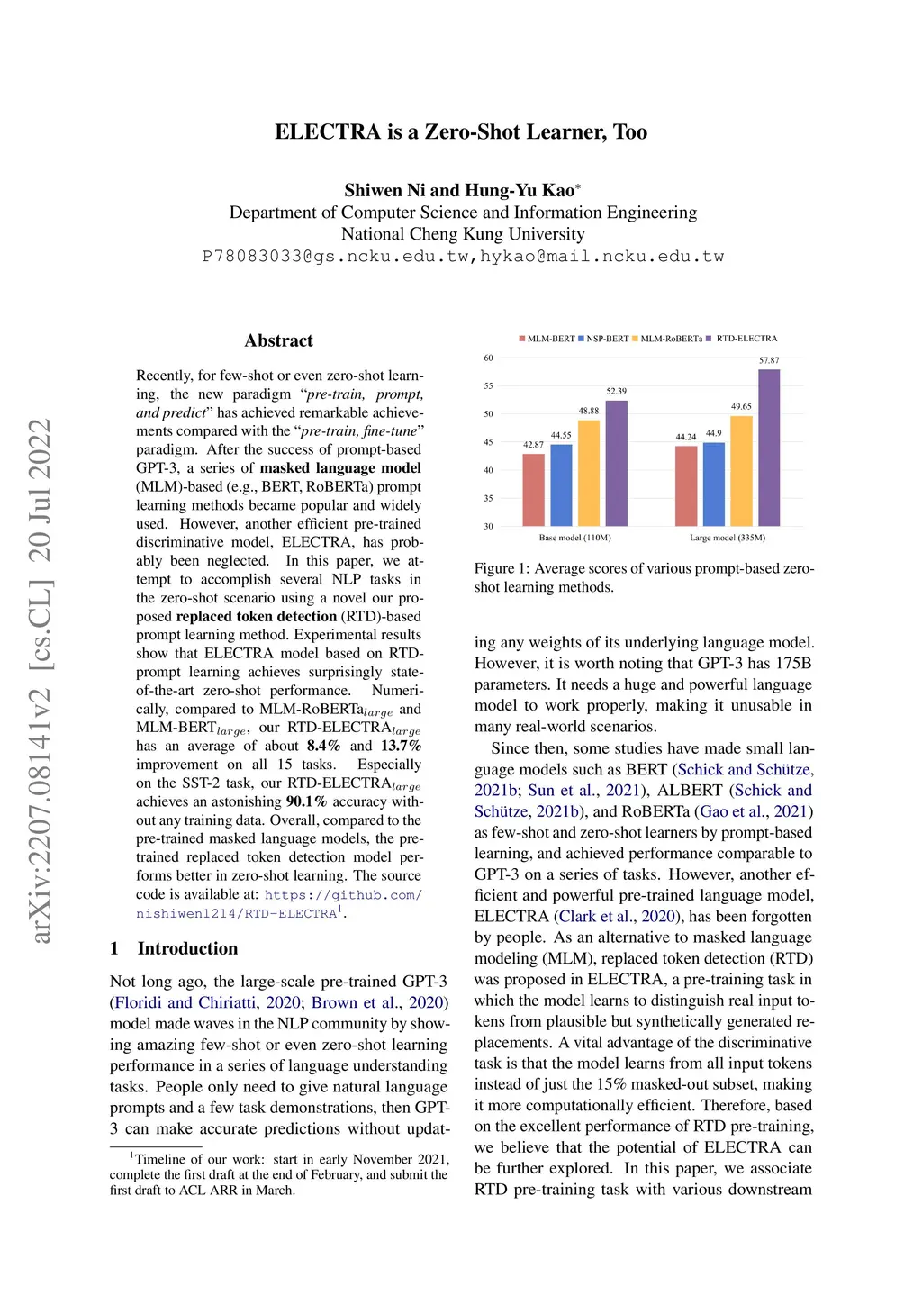 ELECTRA is a Zero-Shot Learner, Too