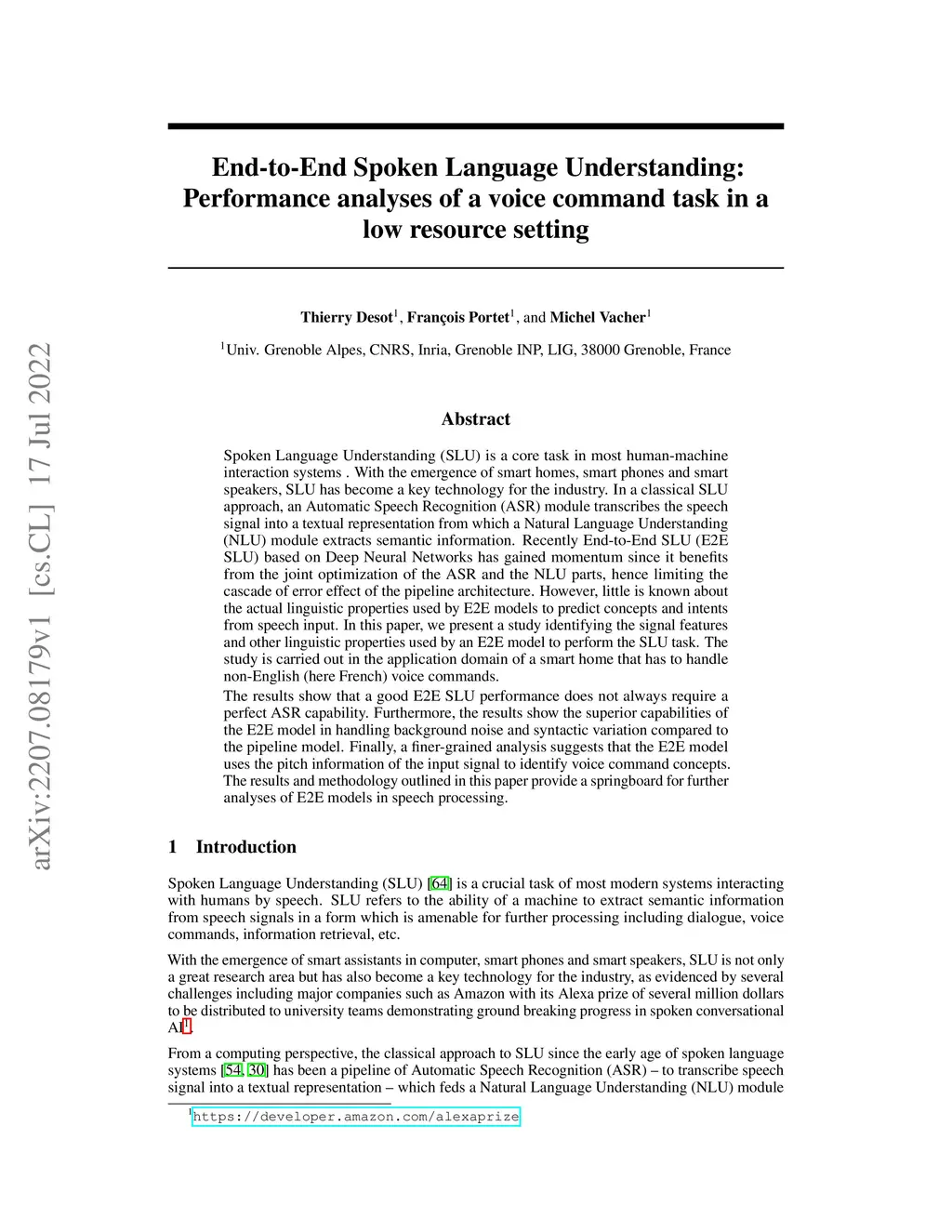 End-to-End Spoken Language Understanding: Performance analyses of a