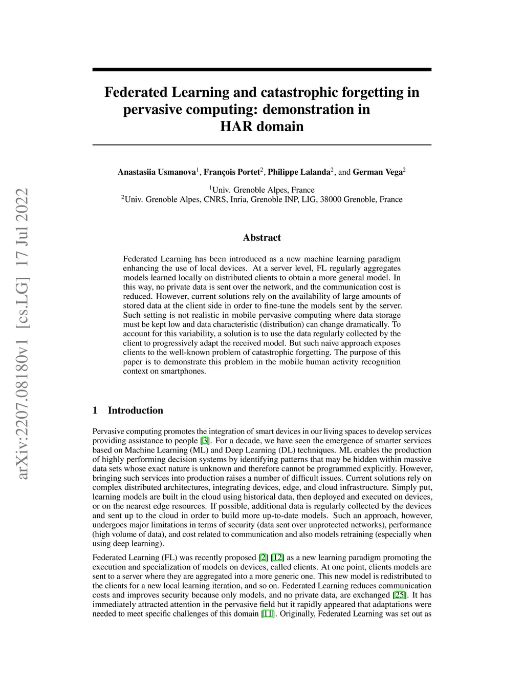 Federated Learning and catastrophic forgetting in pervasive computing: