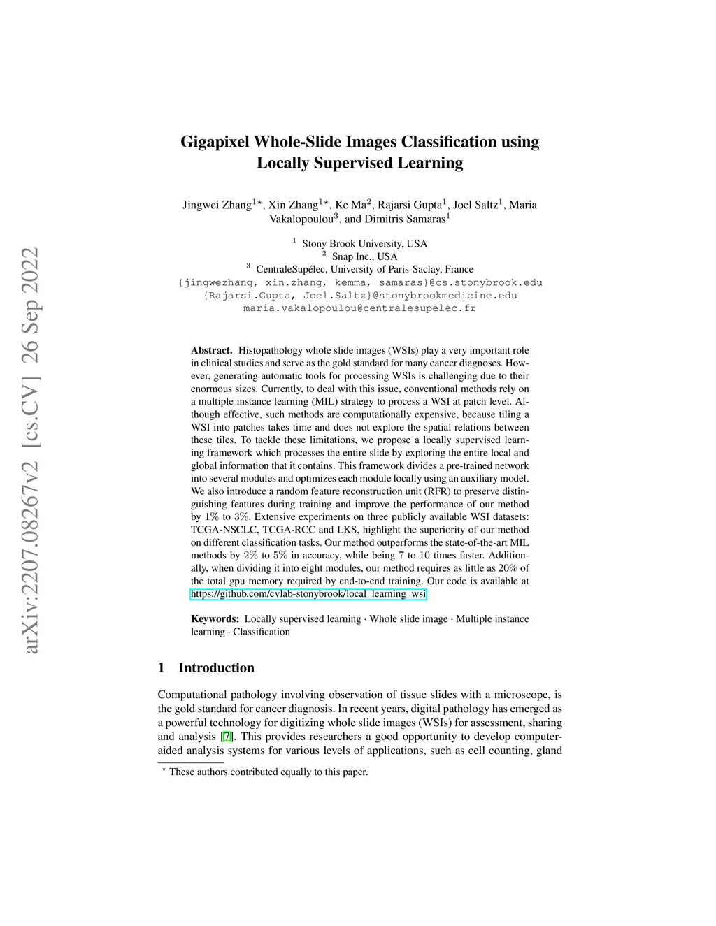 Gigapixel Whole-Slide Images Classification using Locally Supervised