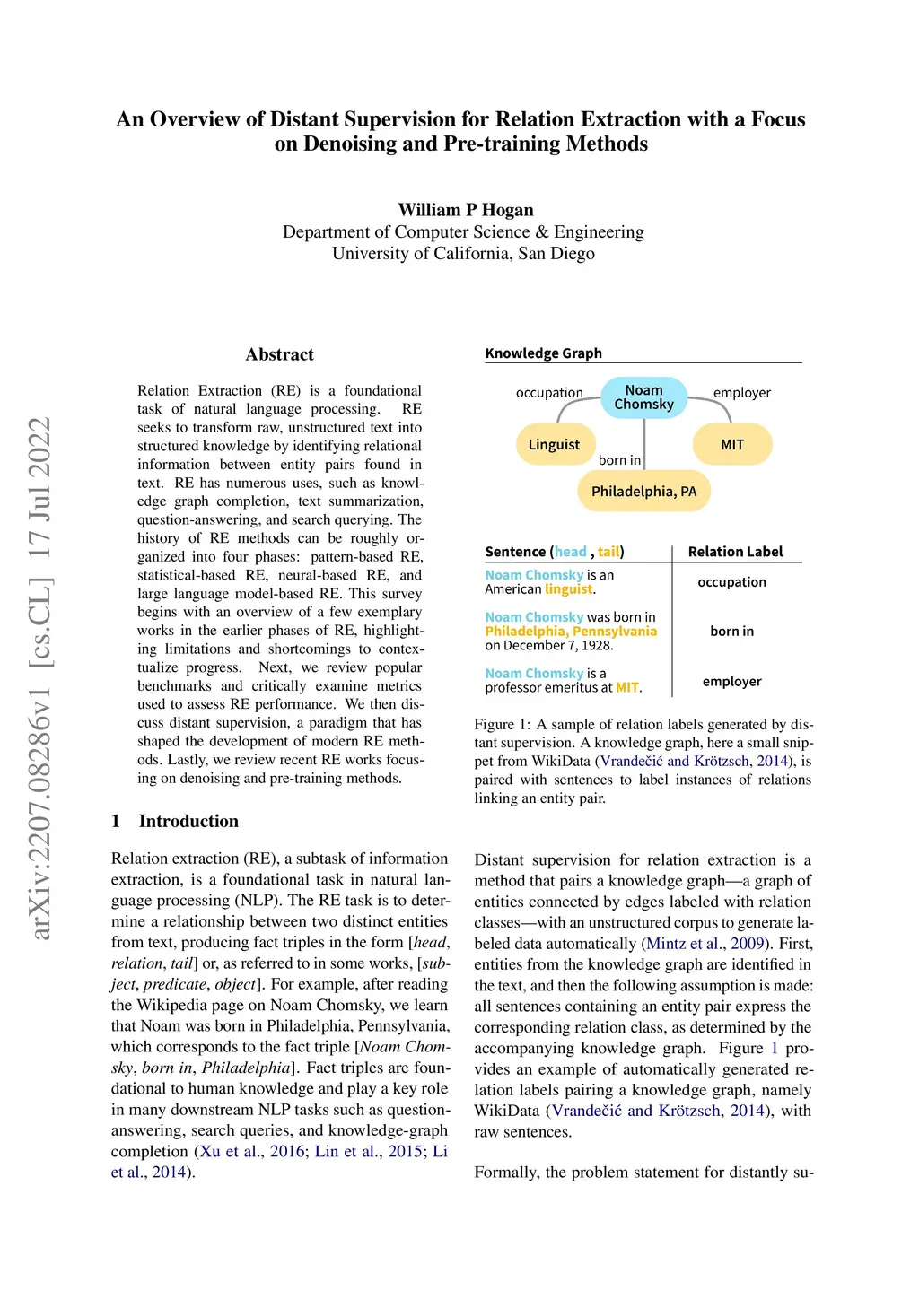 An Overview of Distant Supervision for Relation Extraction with a Focus
