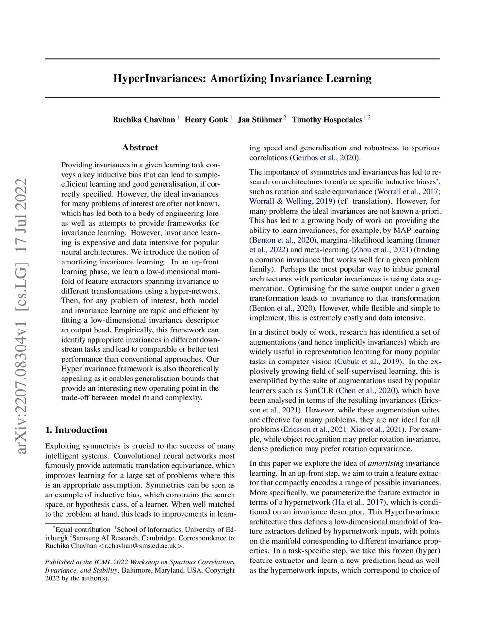 HyperInvariances: Amortizing Invariance Learning