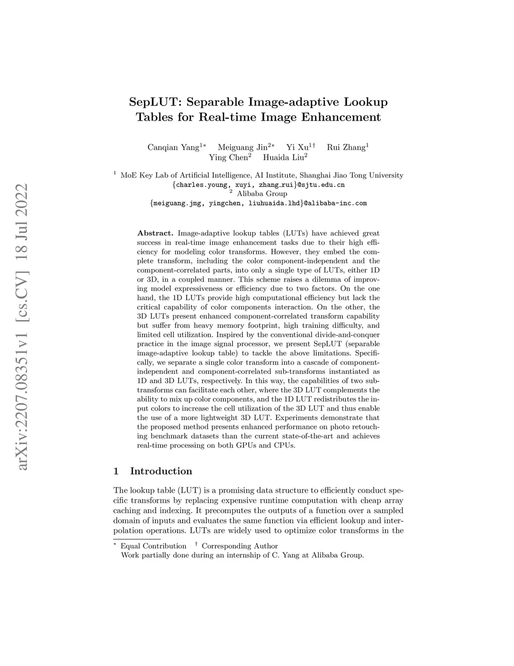 SepLUT: Separable Image-adaptive Lookup Tables for Real-time Image