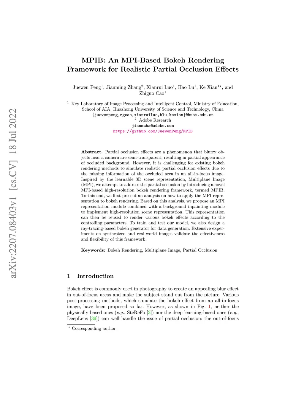 MPIB: An MPI-Based Bokeh Rendering Framework for Realistic Partial