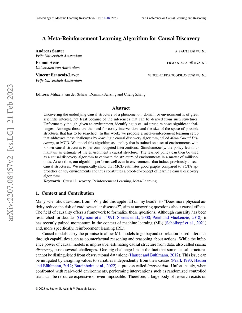 A Meta-Reinforcement Learning Algorithm for Causal Discovery