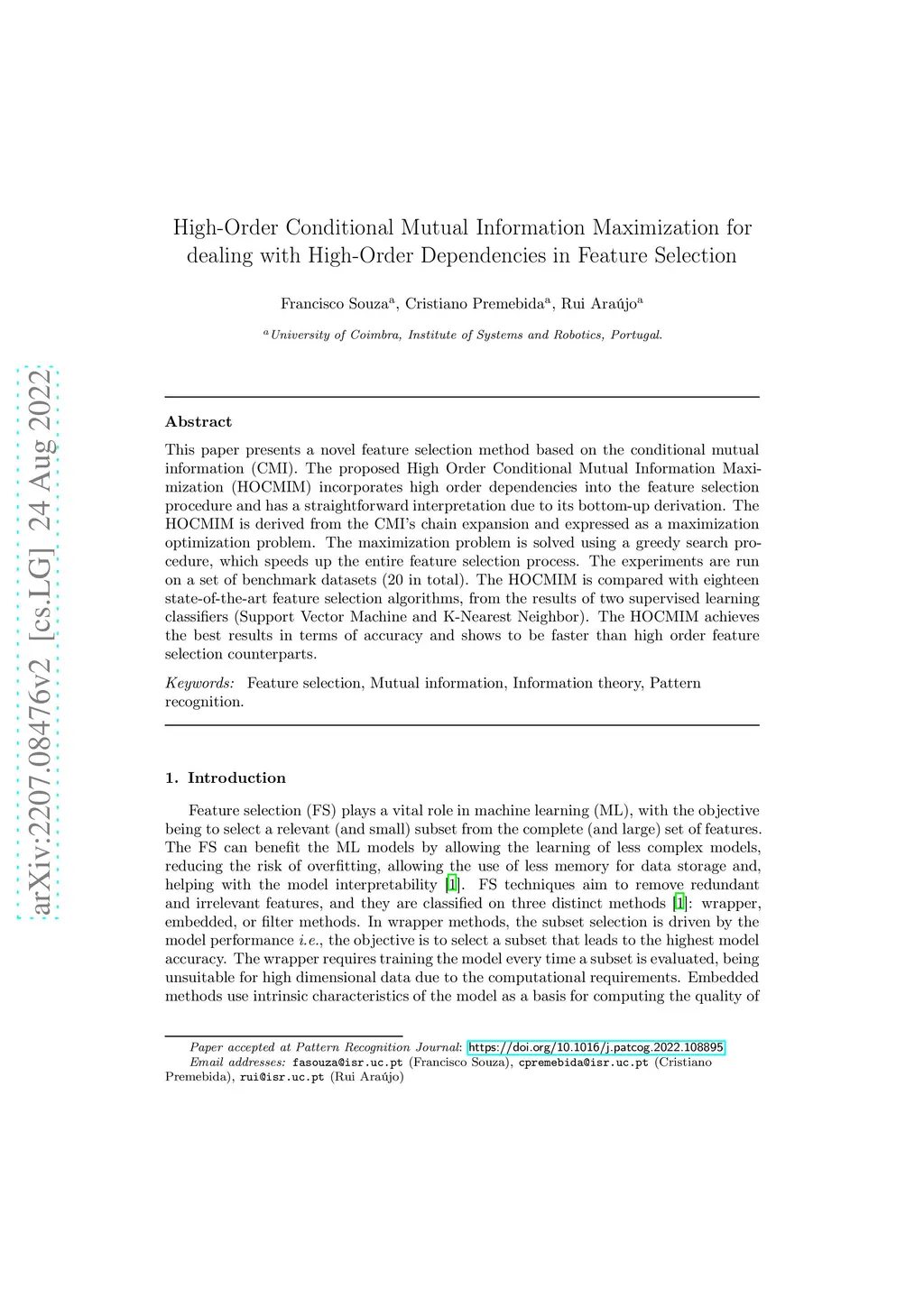 High-Order Conditional Mutual Information Maximization for dealing with