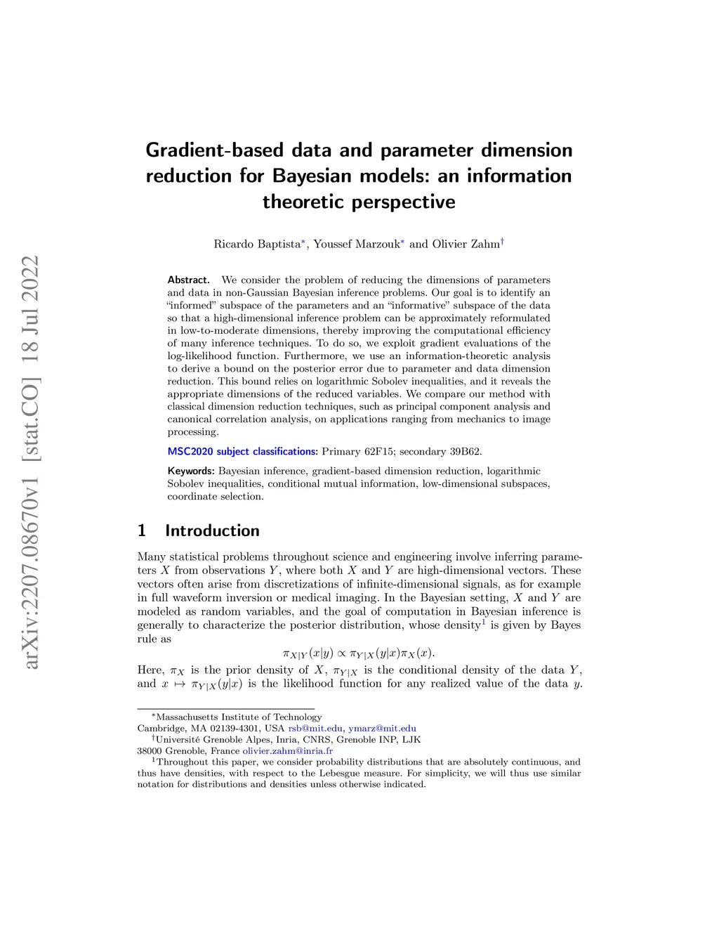 We consider the problem of reducing the dimensions of parameters and data in non-Gaussian Bayesian inference problems. Our goal is to identify an "informed" subspace of the parameters and an "informative" subspace of the data so that a high-dimensional inference problem can be approximately reformulated in low-to-moderate dimensions, thereby improving the computational efficiency of many inference techniques. To do so, we exploit gradient evaluations of the log-likelihood function. Furthermore, we use an information-theoretic analysis to derive a bound on the posterior error due to parameter and data dimension reduction. This bound relies on logarithmic Sobolev inequalities, and it reveals the appropriate dimensions of the reduced variables. We compare our method with classical dimension reduction techniques, such as principal component analysis and canonical correlation analysis, on applications ranging from mechanics to image processing.