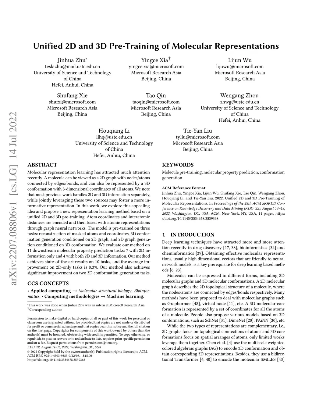 Unified 2D and 3D Pre-Training of Molecular Representations