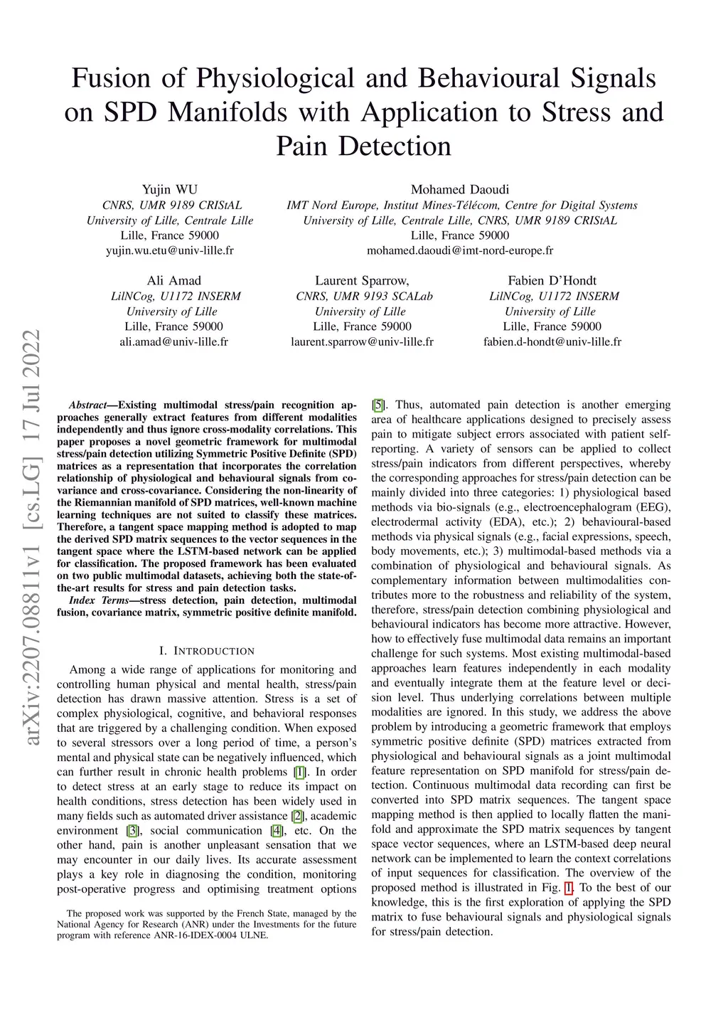 Fusion of Physiological and Behavioural Signals on SPD Manifolds with