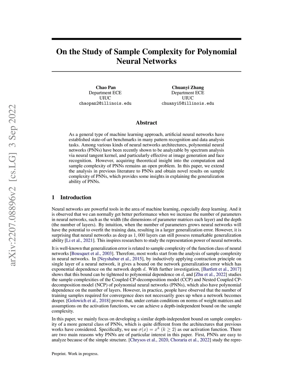 On the Study of Sample Complexity for Polynomial Neural Networks