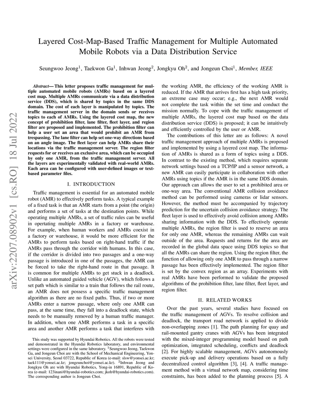 Layered Cost-Map-Based Traffic Management for Multiple Automated Mobile