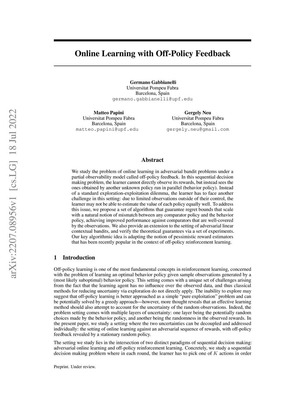 Online Learning with Off-Policy Feedback