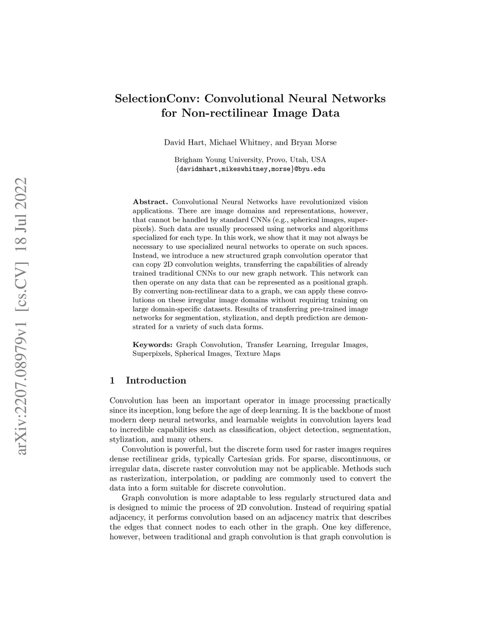 SelectionConv: Convolutional Neural Networks for Non-rectilinear Image
