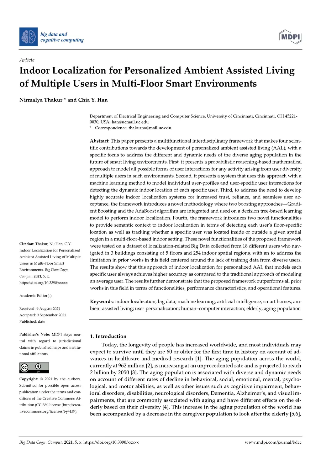 This paper presents a multifunctional interdisciplinary framework that makes four scientific contributions towards the development of personalized ambient assisted living, with a specific focus to address the different and dynamic needs of the diverse aging population in the future of smart living environments. First, it presents a probabilistic reasoning-based mathematical approach to model all possible forms of user interactions for any activity arising from the user diversity of multiple users in such environments. Second, it presents a system that uses this approach with a machine learning method to model individual user profiles and user-specific user interactions for detecting the dynamic indoor location of each specific user. Third, to address the need to develop highly accurate indoor localization systems for increased trust, reliance, and seamless user acceptance, the framework introduces a novel methodology where two boosting approaches Gradient Boosting and the AdaBoost algorithm are integrated and used on a decision tree-based learning model to perform indoor localization. Fourth, the framework introduces two novel functionalities to provide semantic context to indoor localization in terms of detecting each user's floor-specific location as well as tracking whether a specific user was located inside or outside a given spatial region in a multi-floor-based indoor setting. These novel functionalities of the proposed framework were tested on a dataset of localization-related Big Data collected from 18 different users who navigated in 3 buildings consisting of 5 floors and 254 indoor spatial regions. The results show that this approach of indoor localization for personalized AAL that models each specific user always achieves higher accuracy as compared to the traditional approach of modeling an average user.