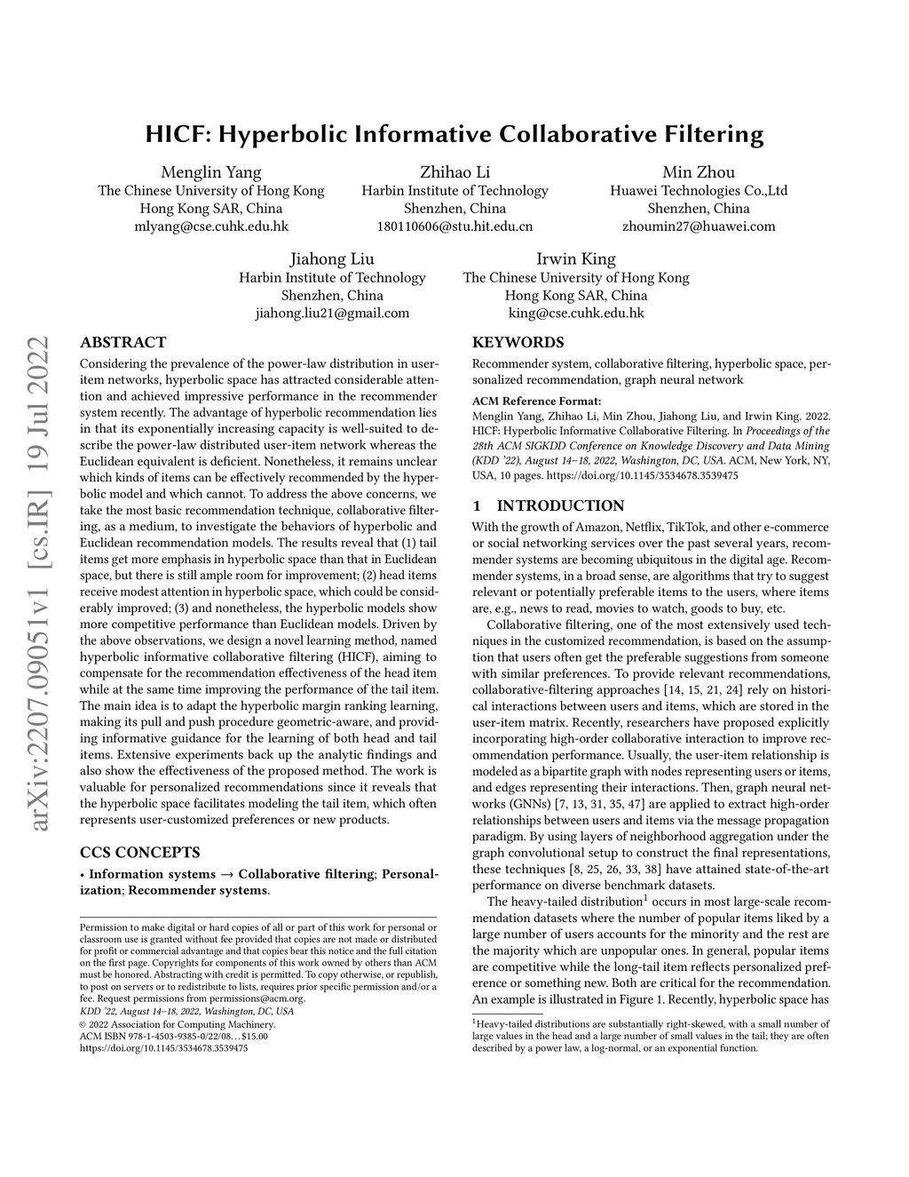 HICF: Hyperbolic Informative Collaborative Filtering