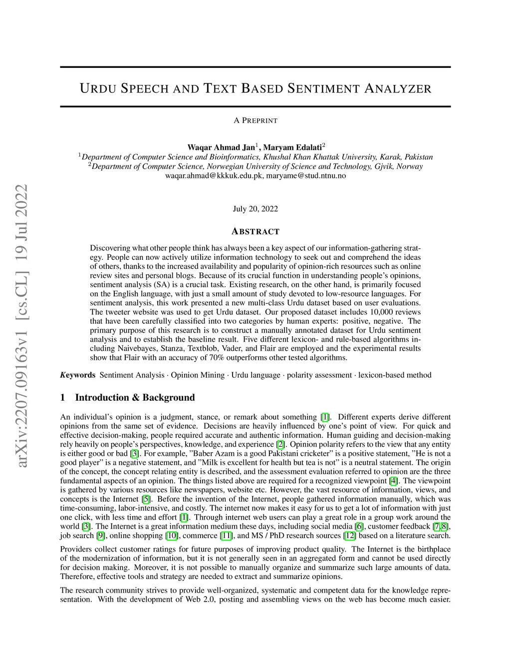 Urdu Speech and Text Based Sentiment Analyzer