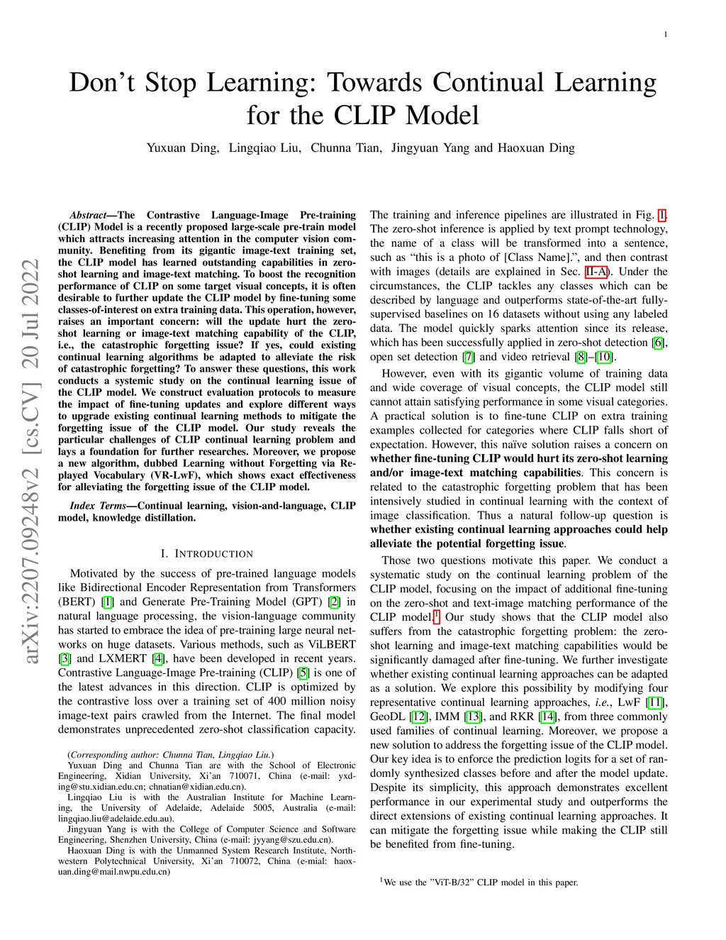 Don't Stop Learning: Towards Continual Learning for the CLIP Model