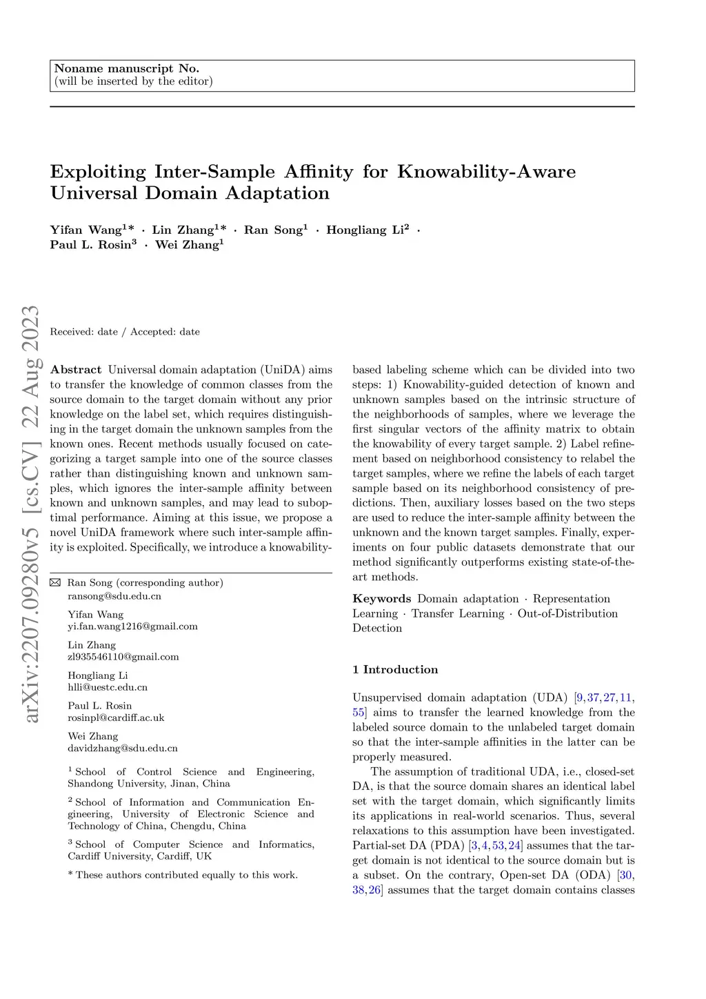 Exploiting Inter-Sample Affinity for Knowability-Aware Universal Domain