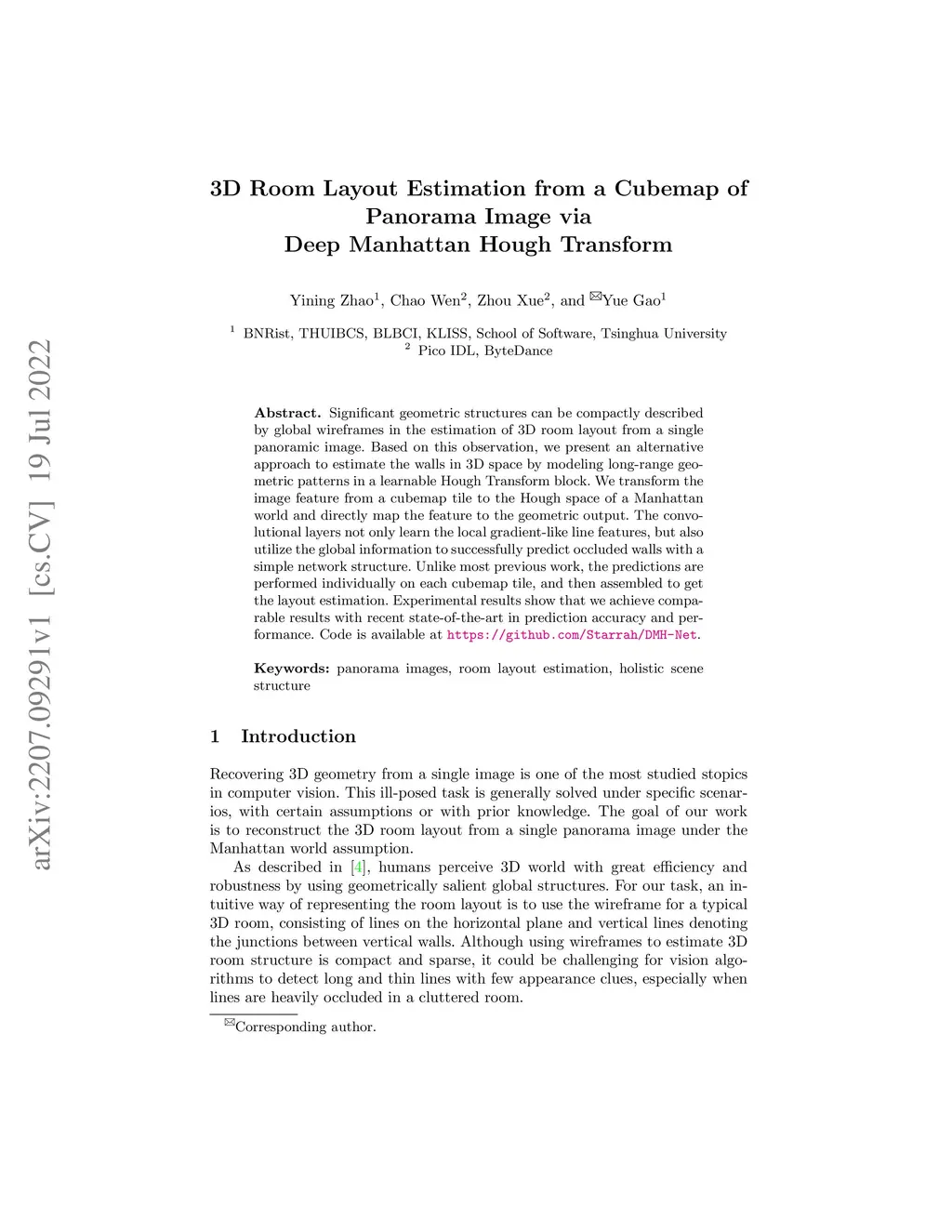3D Room Layout Estimation from a Cubemap of Panorama Image via Deep