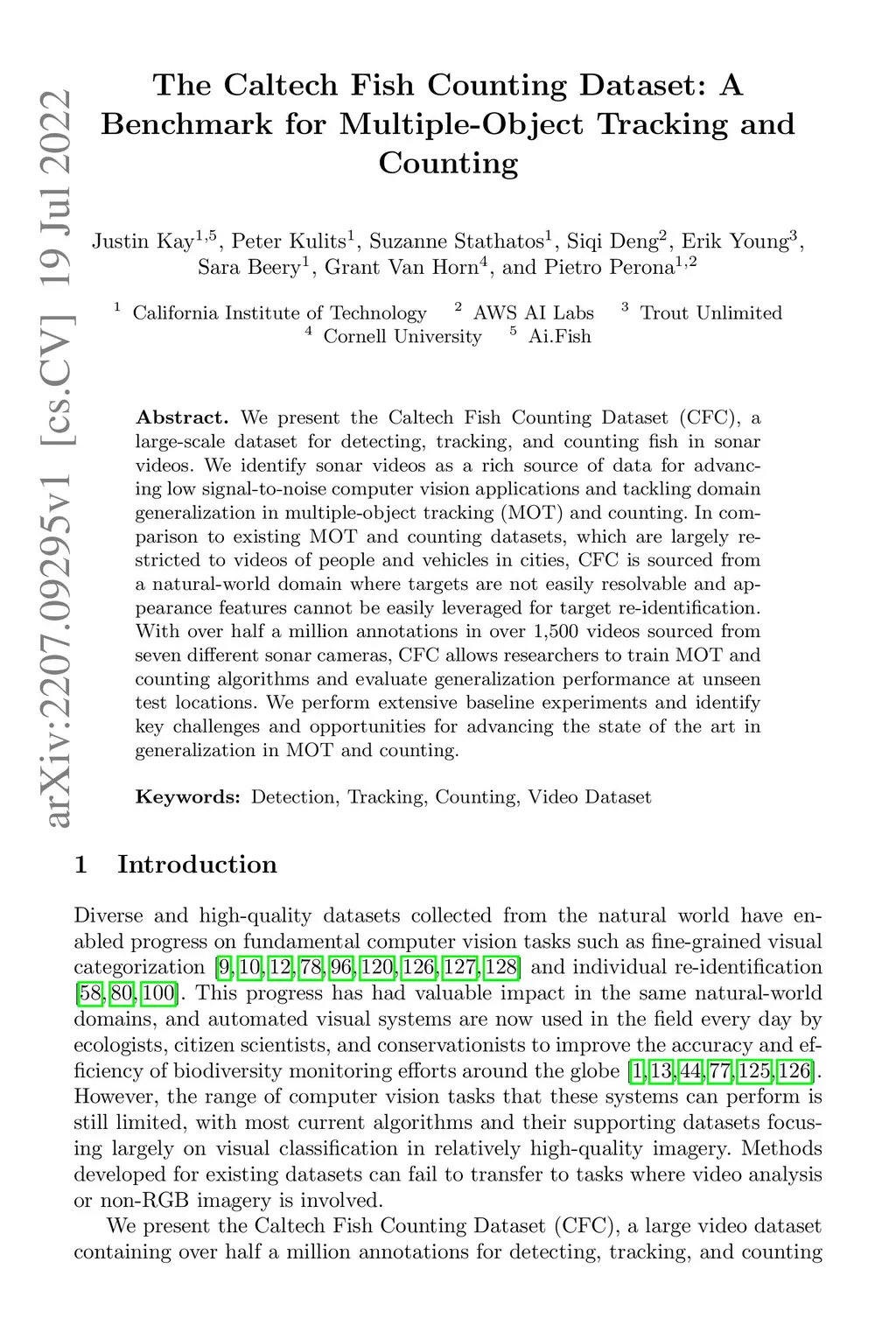 The Caltech Fish Counting Dataset: A Benchmark for Multiple-Object