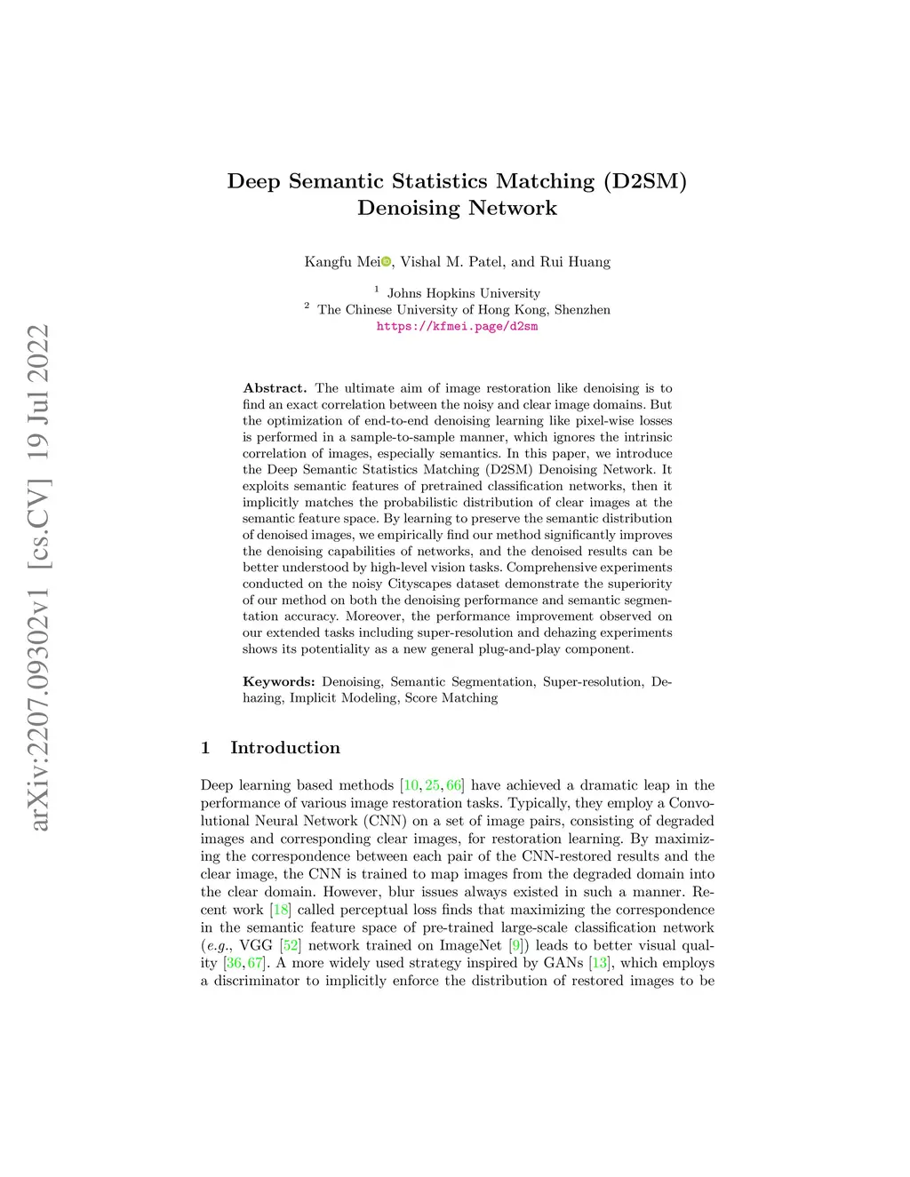 Deep Semantic Statistics Matching (D2SM) Denoising Network