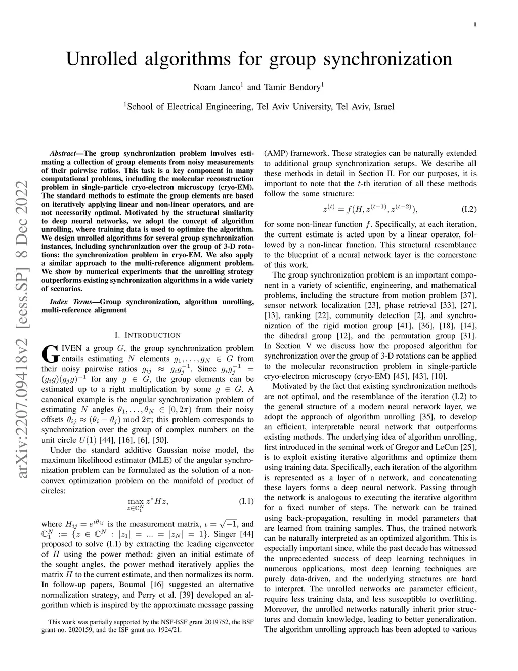 The group synchronization problem involves estimating a collection of group elements from noisy measurements of their pairwise ratios. This task is a key component in many computational problems, including the molecular reconstruction problem in single-particle cryo-electron microscopy (cryo-EM). The standard methods to estimate the group elements are based on iteratively applying linear and non-linear operators, and are not necessarily optimal. Motivated by the structural similarity to deep neural networks, we adopt the concept of algorithm unrolling, where training data is used to optimize the algorithm. We design unrolled algorithms for several group synchronization instances, including synchronization over the group of 3-D rotations: the synchronization problem in cryo-EM. We also apply a similar approach to the multi-reference alignment problem. We show by numerical experiments that the unrolling strategy outperforms existing synchronization algorithms in a wide variety of scenarios.