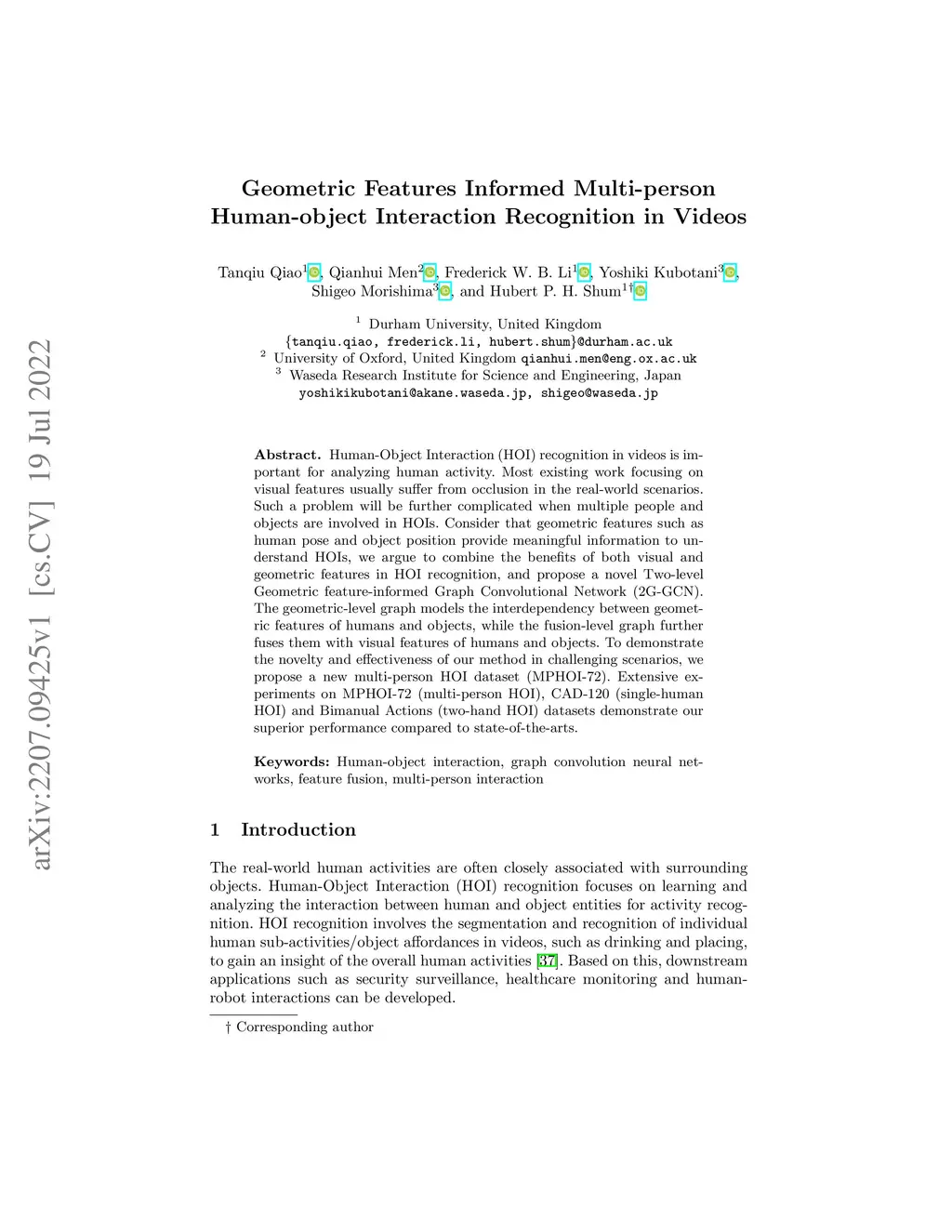 Geometric Features Informed Multi-person Human-object Interaction