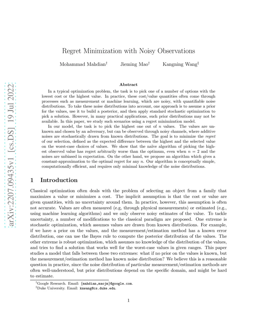Regret Minimization with Noisy Observations