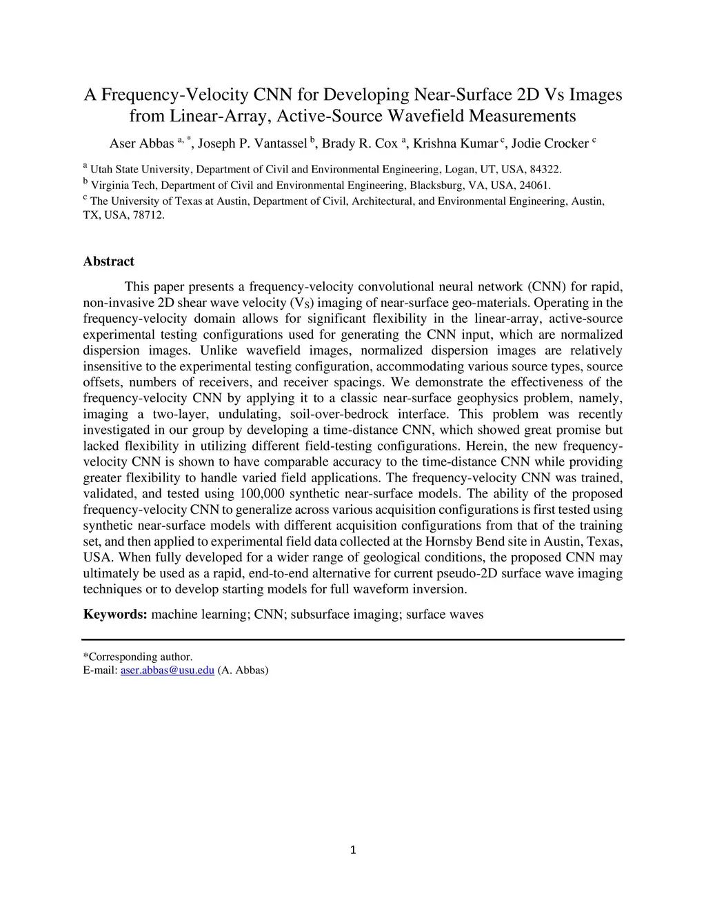 This paper presents a frequency-velocity convolutional neural network (CNN) for rapid, non-invasive 2D shear wave velocity (Vs) imaging of near-surface geo-materials. Operating in the frequency-velocity domain allows for significant flexibility in the linear-array, active-source experimental testing configurations used for generating the CNN input, which are normalized dispersion images. Unlike wavefield images, normalized dispersion images are relatively insensitive to the experimental testing configuration, accommodating various source types, source offsets, numbers of receivers, and receiver spacings. We demonstrate the effectiveness of the frequency-velocity CNN by applying it to a classic near-surface geophysics problem, namely, imaging a two-layer, undulating, soil-over-bedrock interface. This problem was recently investigated in our group by developing a time-distance CNN, which showed great promise but lacked flexibility in utilizing different field-testing configurations. Herein, the new frequency-velocity CNN is shown to have comparable accuracy to the time-distance CNN while providing greater flexibility to handle varied field applications. The frequency-velocity CNN was trained, validated, and tested using 100,000 synthetic near-surface models. The ability of the proposed frequency-velocity CNN to generalize across various acquisition configurations is first tested using synthetic near-surface models with different acquisition configurations from that of the training set, and then applied to experimental field data collected at the Hornsby Bend site in Austin, Texas, USA. When fully developed for a wider range of geological conditions, the proposed CNN may ultimately be used as a rapid, end-to-end alternative for current pseudo-2D surface wave imaging techniques or to develop starting models for full waveform inversion.