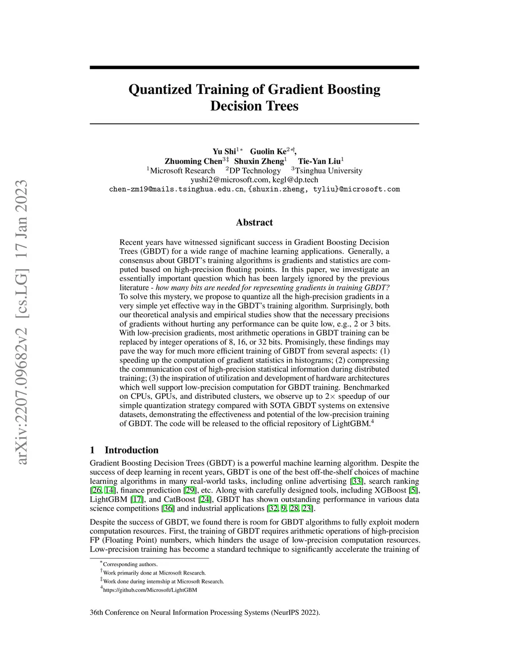 Recent years have witnessed significant success in Gradient Boosting Decision Trees (GBDT) for a wide range of machine learning applications. Generally, a consensus about GBDT's training algorithms is gradients and statistics are computed based on high-precision floating points. In this paper, we investigate an essentially important question which has been largely ignored by the previous literature: how many bits are needed for representing gradients in training GBDT? To solve this mystery, we propose to quantize all the high-precision gradients in a very simple yet effective way in the GBDT's training algorithm. Surprisingly, both our theoretical analysis and empirical studies show that the necessary precisions of gradients without hurting any performance can be quite low, e.g., 2 or 3 bits. With low-precision gradients, most arithmetic operations in GBDT training can be replaced by integer operations of 8, 16, or 32 bits. Promisingly, these findings may pave the way for much more efficient training of GBDT from several aspects: (1) speeding up the computation of gradient statistics in histograms; (2) compressing the communication cost of high-precision statistical information during distributed training; (3) the inspiration of utilization and development of hardware architectures which well support low-precision computation for GBDT training. Benchmarked on CPUs, GPUs, and distributed clusters, we observe up to 2 speedup of our simple quantization strategy compared with SOTA GBDT systems on extensive datasets, demonstrating the effectiveness and potential of the low-precision training of GBDT. The code will be released to the official repository of LightGBM.