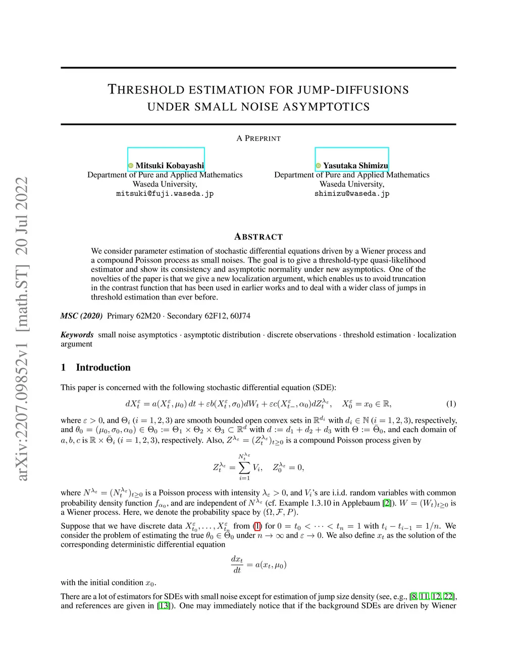 Statistical Inference for Stochastic Processes : An International Journal devoted to Time Series Analysis and the Statistics of Continuous Time Processes and Dynamical Systems (SISP), 2022
