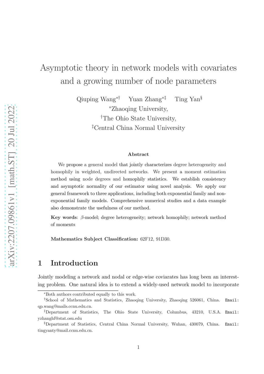 Asymptotic theory in network models with covariates and a growing number