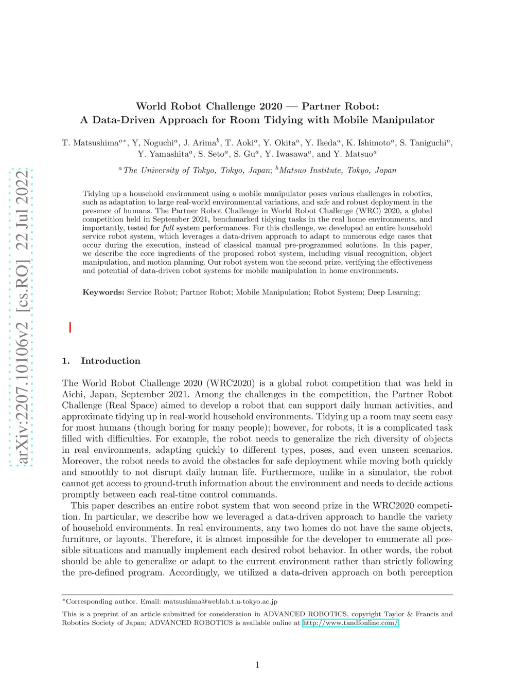 World Robot Challenge 2020 -- Partner Robot: A Data-Driven Approach for
