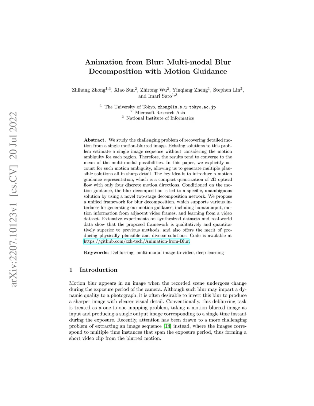 Animation from Blur: Multi-modal Blur Decomposition with Motion Guidance