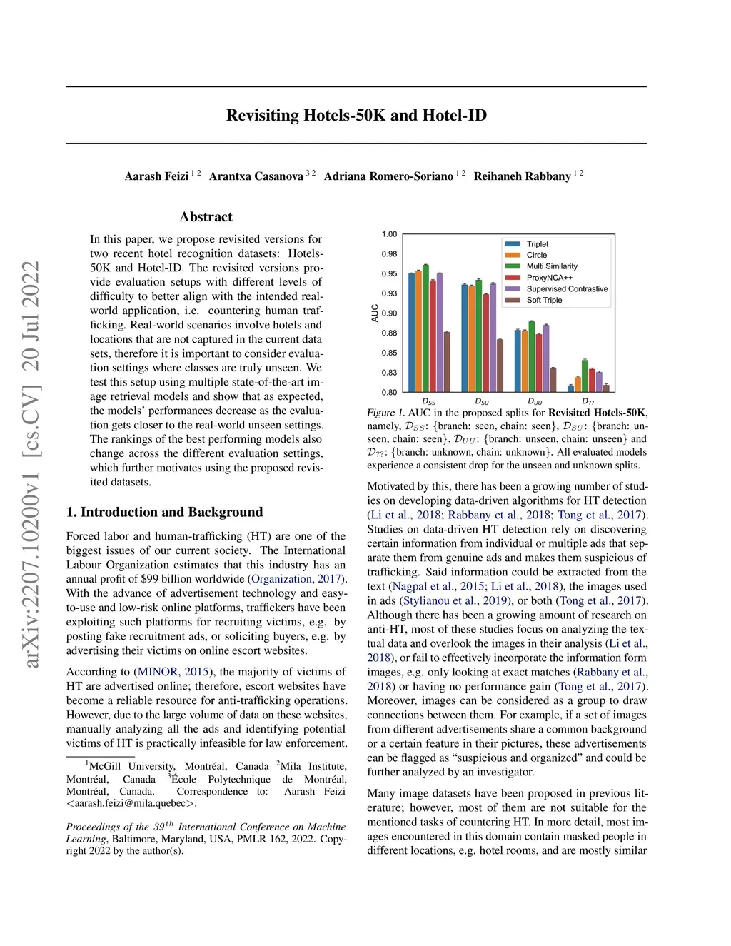In this paper, we propose revisited versions for two recent hotel recognition datasets: Hotels50K and Hotel-ID. The revisited versions provide evaluation setups with different levels of difficulty to better align with the intended real-world application, i.e. countering human trafficking. Real-world scenarios involve hotels and locations that are not captured in the current data sets, therefore it is important to consider evaluation settings where classes are truly unseen. We test this setup using multiple state-of-the-art image retrieval models and show that as expected, the models' performances decrease as the evaluation gets closer to the real-world unseen settings. The rankings of the best performing models also change across the different evaluation settings, which further motivates using the proposed revisited datasets.