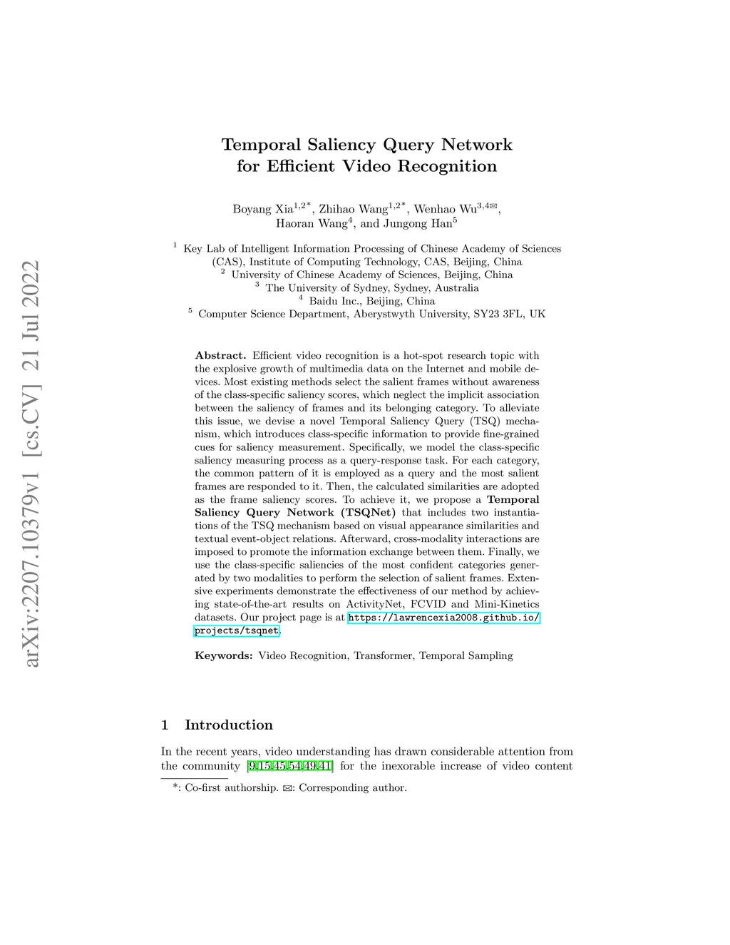 Temporal Saliency Query Network for Efficient Video Recognition