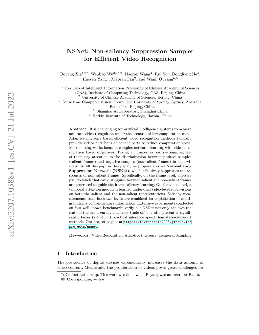 NSNet: Non-saliency Suppression Sampler for Efficient Video Recognition