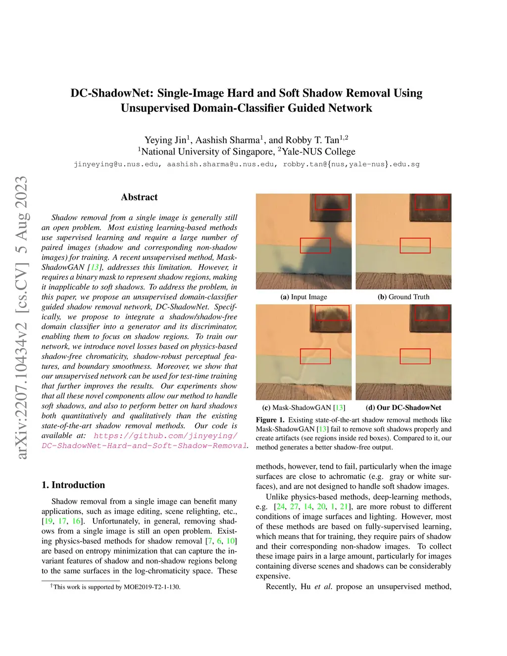 DC-ShadowNet: Single-Image Hard and Soft Shadow Removal Using
