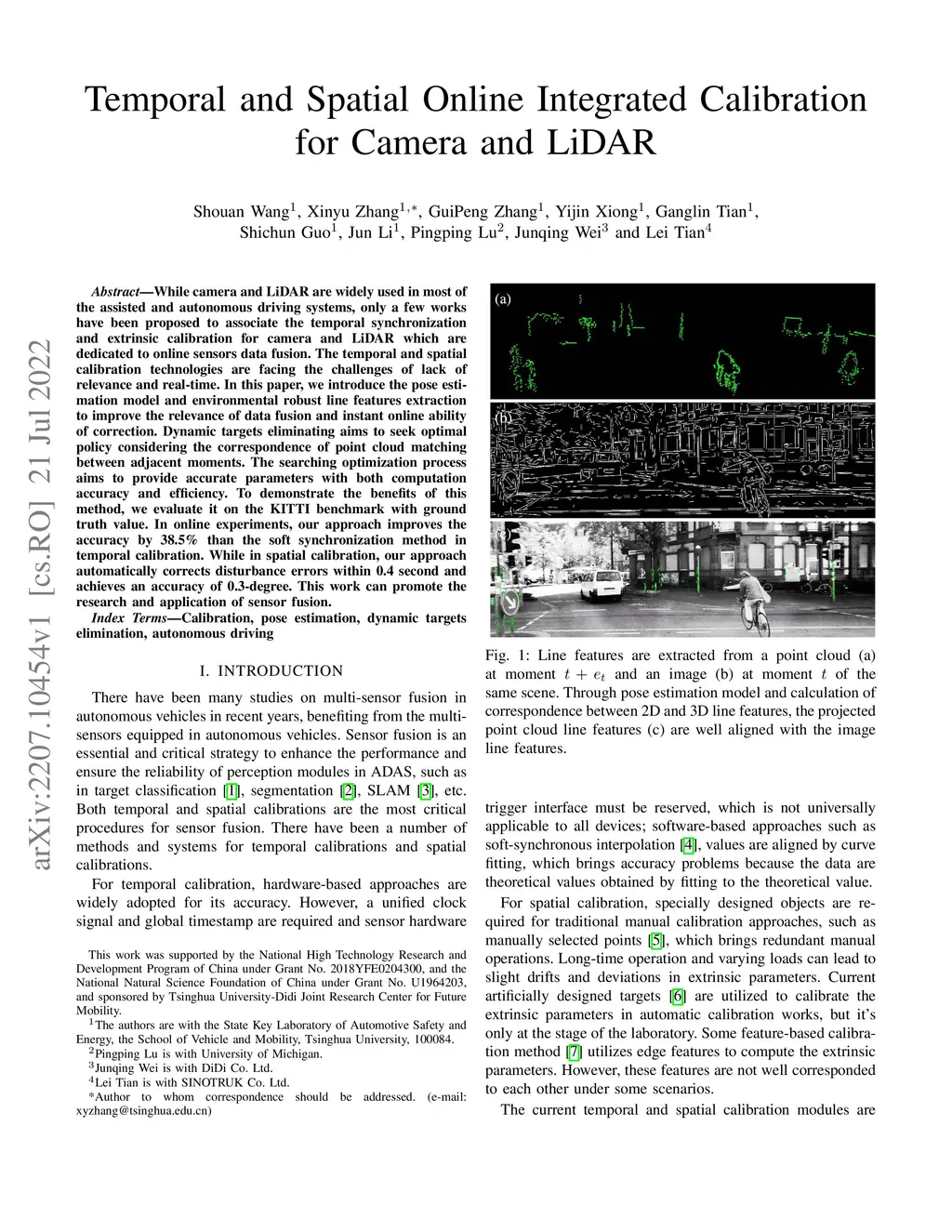 Temporal and Spatial Online Integrated Calibration for Camera and LiDAR
