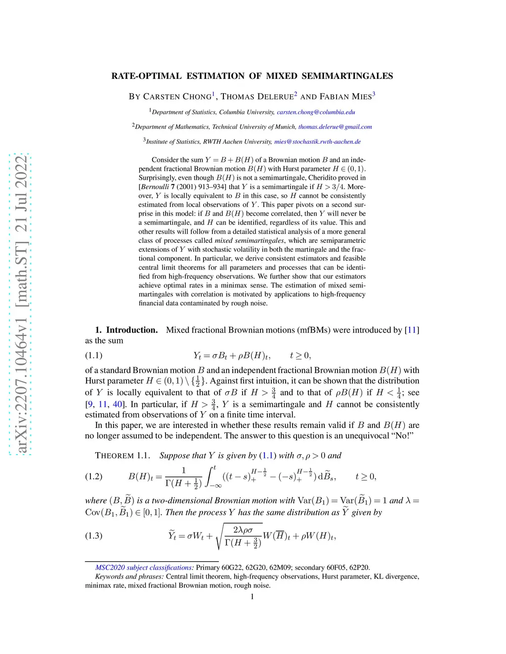 Consider the sum of a Brownian motion and an independent fractional Brownian motion with Hurst parameter . Surprisingly, even though is not a semimartingale, Cheridito proved in [Bernoulli 7 (2001) 913--934] that is a semimartingale if . Moreover, is locally equivalent to in this case, so cannot be consistently estimated from local observations of . This paper pivots on a second surprise in this model: if and become correlated, then will never be a semimartingale, and can be identified, regardless of its value. This and other results will follow from a detailed statistical analysis of a more general class of processes called mixed semimartingales, which are semiparametric extensions of with stochastic volatility in both the martingale and the fractional component. In particular, we derive consistent estimators and feasible central limit theorems for all parameters and processes that can be identified from high-frequency observations. We further show that our estimators achieve optimal rates in a minimax sense. The estimation of mixed semimartingales with correlation is motivated by applications to high-frequency financial data contaminated by rough noise.