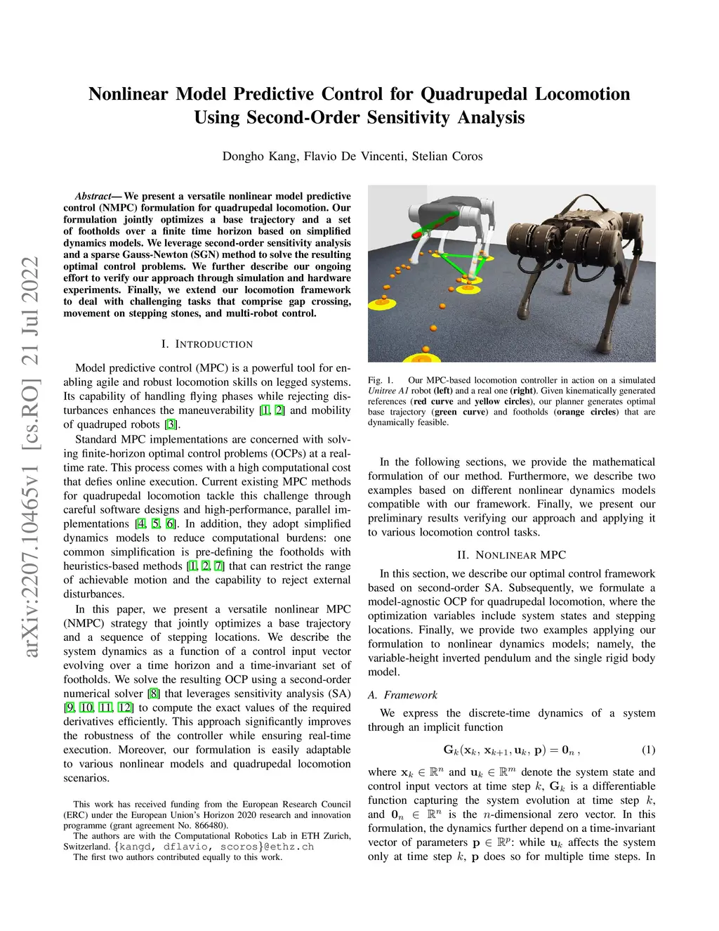 We present a versatile nonlinear model predictive control (NMPC) formulation for quadrupedal locomotion. Our formulation jointly optimizes a base trajectory and a set of footholds over a finite time horizon based on simplified dynamics models. We leverage second-order sensitivity analysis and a sparse Gauss-Newton (SGN) method to solve the resulting optimal control problems. We further describe our ongoing effort to verify our approach through simulation and hardware experiments. Finally, we extend our locomotion framework to deal with challenging tasks that comprise gap crossing, movement on stepping stones, and multi-robot control.