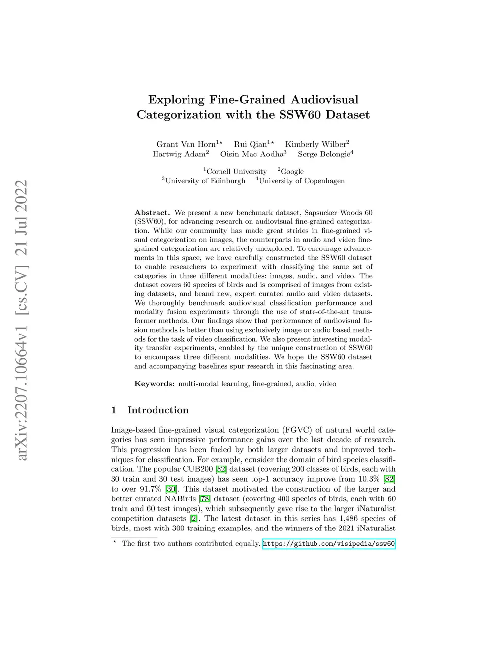 Exploring Fine-Grained Audiovisual Categorization with the SSW60 Dataset