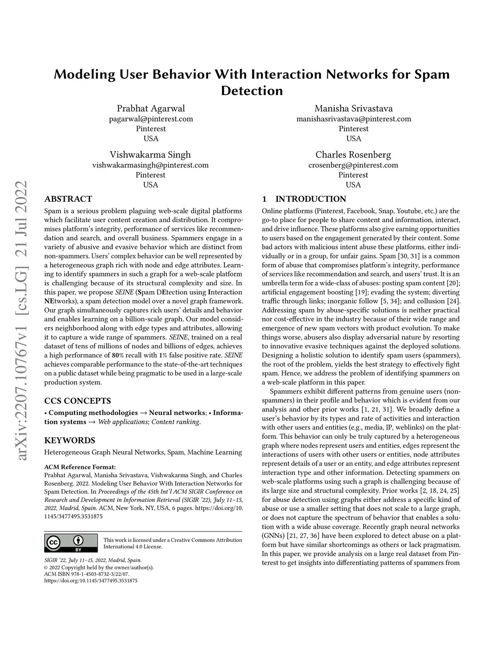 Modeling User Behavior With Interaction Networks for Spam Detection