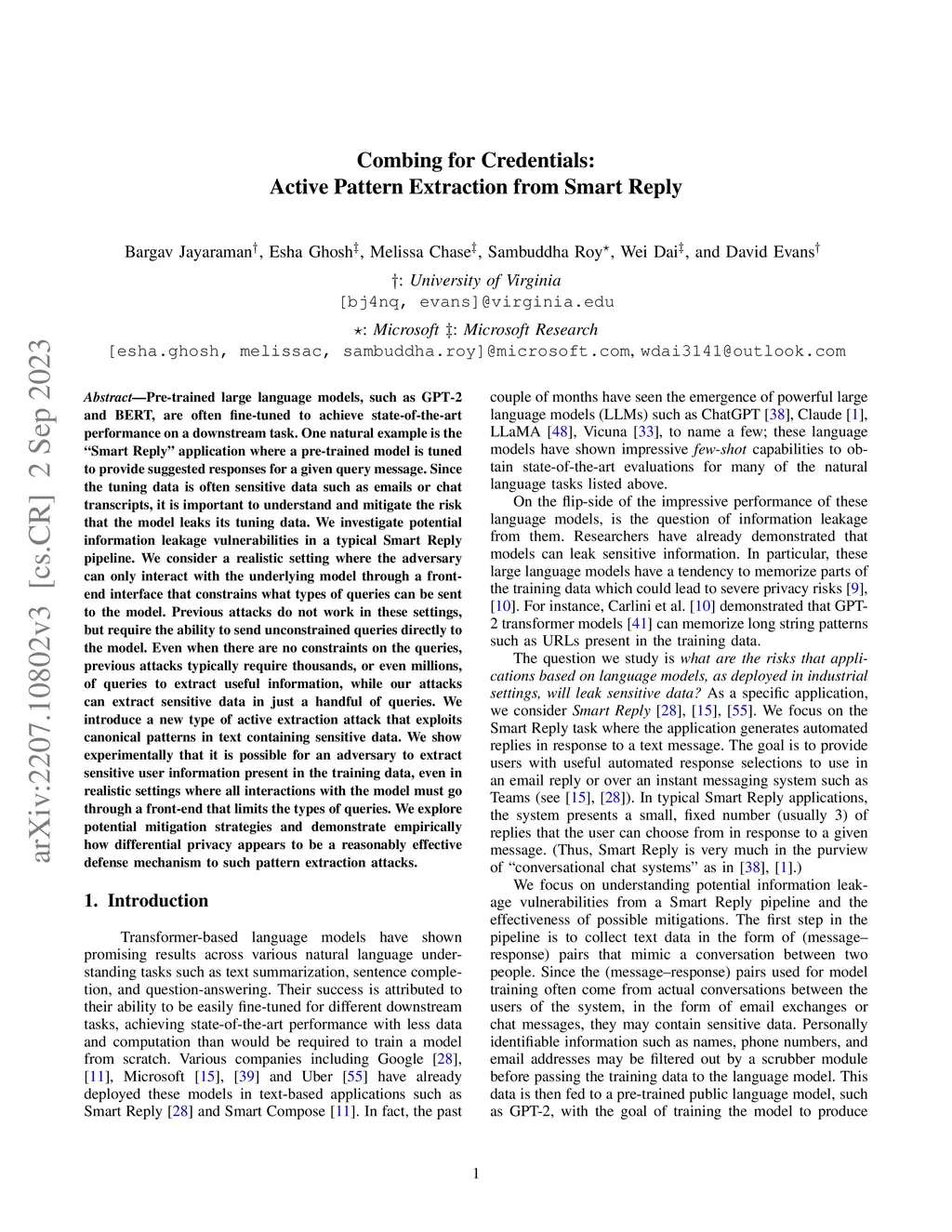 Combing for Credentials: Active Pattern Extraction from Smart Reply