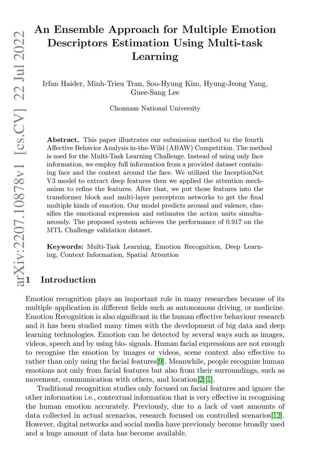 An Ensemble Approach for Multiple Emotion Descriptors Estimation Using