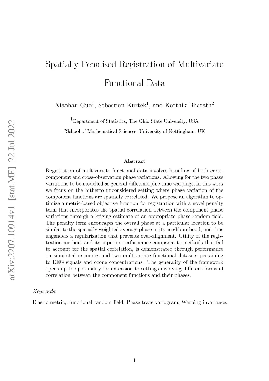 Registration of multivariate functional data involves handling of both cross-component and cross-observation phase variations. Allowing for the two phase variations to be modelled as general diffeomorphic time warpings, in this work we focus on the hitherto unconsidered setting where phase variation of the component functions are spatially correlated. We propose an algorithm to optimize a metric-based objective function for registration with a novel penalty term that incorporates the spatial correlation between the component phase variations through a kriging estimate of an appropriate phase random field. The penalty term encourages the overall phase at a particular location to be similar to the spatially weighted average phase in its neighbourhood, and thus engenders a regularization that prevents over-alignment. Utility of the registration method, and its superior performance compared to methods that fail to account for the spatial correlation, is demonstrated through performance on simulated examples and two multivariate functional datasets pertaining to EEG signals and ozone concentrations. The generality of the framework opens up the possibility for extension to settings involving different forms of correlation between the component functions and their phases.
