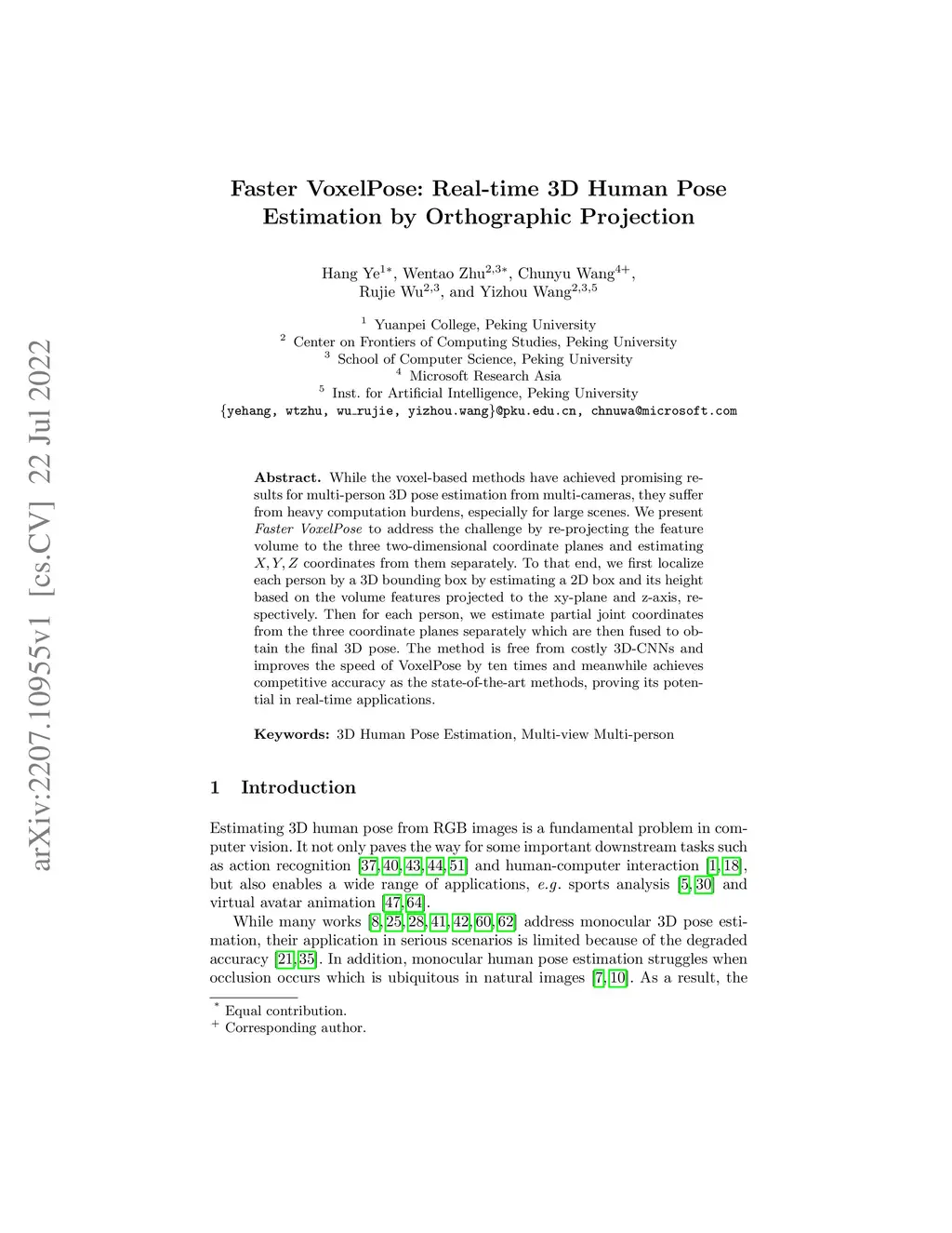 Faster VoxelPose: Real-time 3D Human Pose Estimation by Orthographic