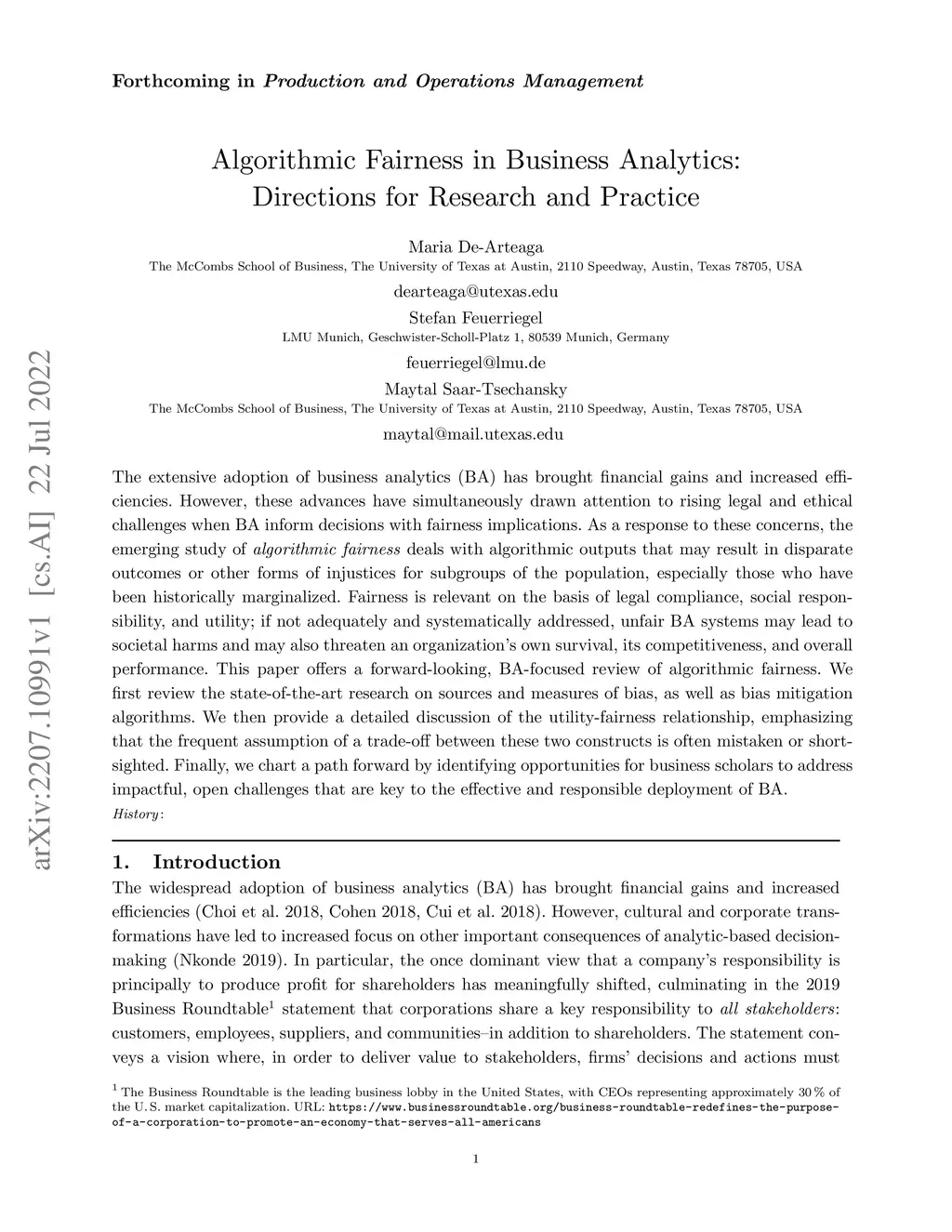 Algorithmic Fairness in Business Analytics: Directions for Research and