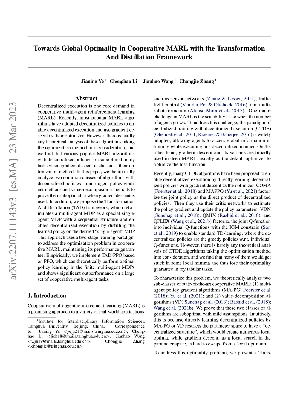 Towards Global Optimality in Cooperative MARL with the Transformation And Distillation Framework